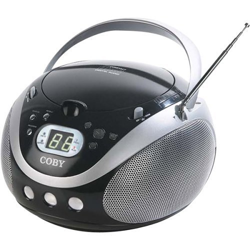 The MP-CD451 owes its audio performance to its 1-bit digital-to-analog converter, which ensures a clean CD sound, and its pair of wide-ranging side speakers. Rounding out the feature set is a 3.5 mm stereo headphone jack, a digital two-digit LED display, a telescoping FM antenna, and a flip-up carrying handle. The unit runs on either AC power or six C-size batteries (not included) and measures a compact 8.25 by 5.5 by 8.5 inches (W x H x D). And as with all Coby audio products, the MP-CD451 is backed by a 90-day warranty.